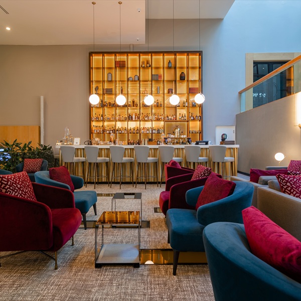 The stylish hotel bar offers a sophisticated setting for informal meetings, quick breaks, and networking in comfort - just steps from the conference floor.